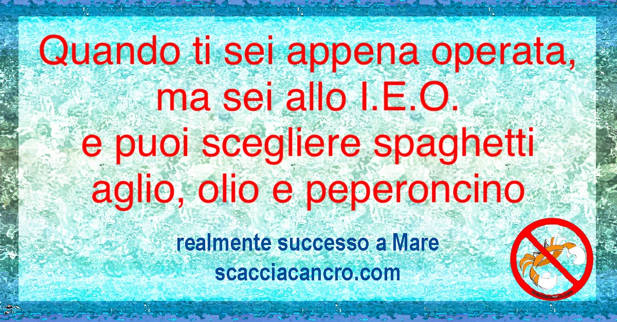 Quando ti sei appena operata ma sei allo I.E.O. e puoi scegliere spaghetti aglio, olio e peperoncino.