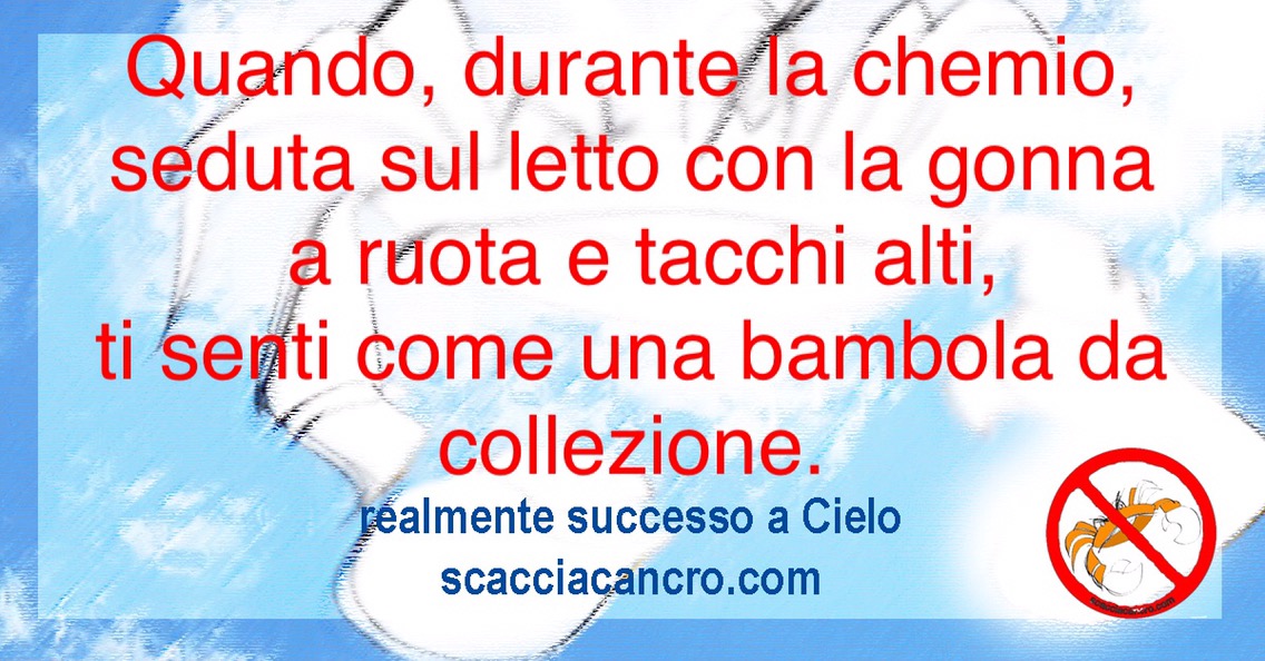 Quando, durante la chemio, seduta sul letto con la gonna a ruota e tacchi alti, ti senti come una bambola da collezione.