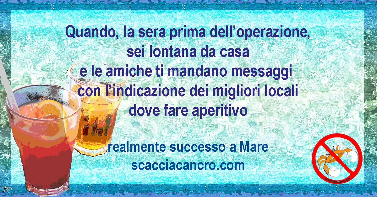 Quando, la sera prima dell’operazione, sei lontana da casa e le amiche ti mandano messaggi con l’indicazione dei migliori locali dove fare aperitivo