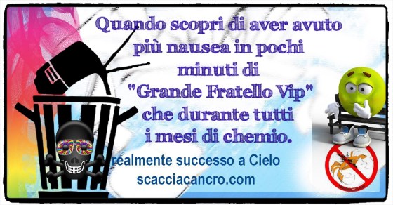 Nausea spettacolare. Quando scopri di aver avuto più nausea in pochi minuti di “Grande Fratello Vip” che durante tutti i mesi di chemio.