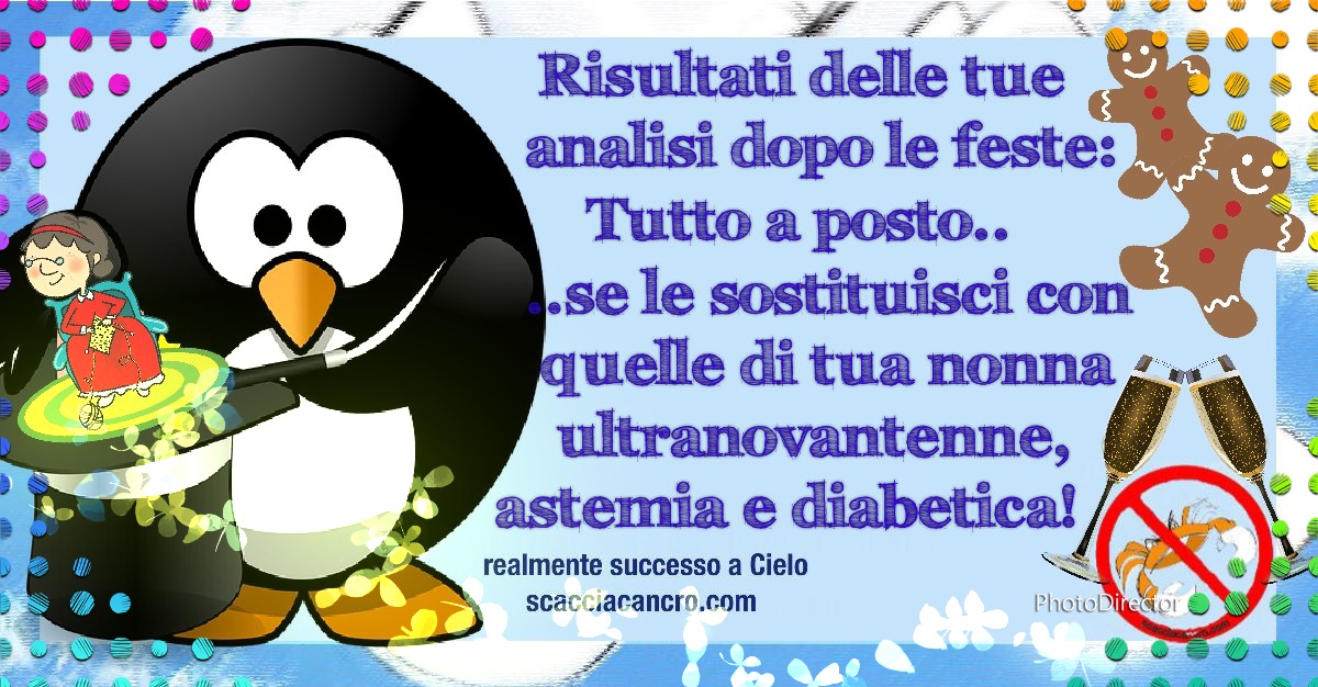 Risultati delle tue analisi dopo le feste: Tutto a posto..se le sostituisci con quelle di tua nonna ultranovantenne, astemia e diabetica!