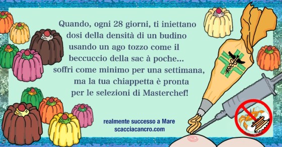ago, budino, cancro, chiappetta, iniezione, Masterchef, punturone, sac a poche, scacciacancro, tumore