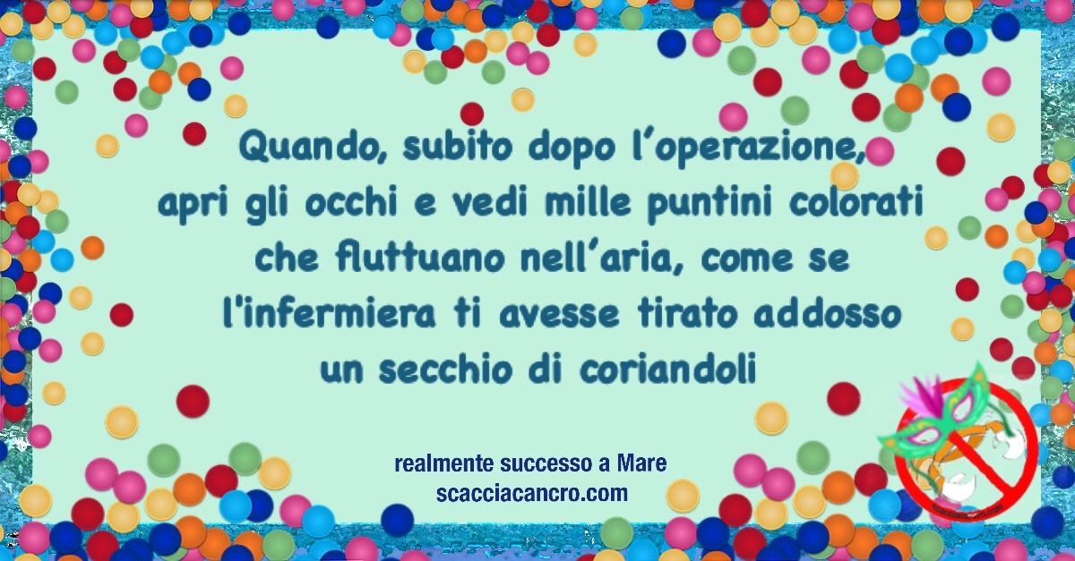 Quando, subito dopo l’operazione, apri gli occhi e vedi mille puntini colorati che fluttuano nell’aria, come se l’infermiera ti avesse tirato addosso un secchio di coriandoli