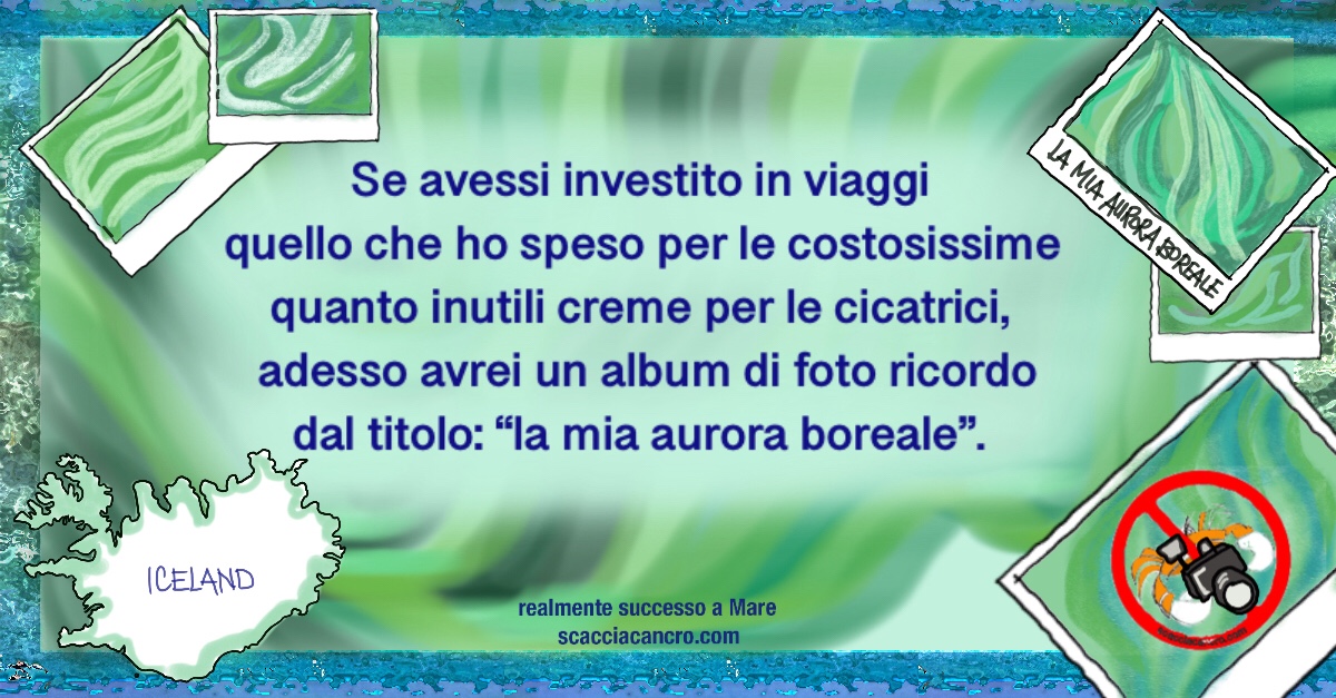 Se avessi investito in viaggi quanto ho speso per le costosissime quanto inutili creme per le cicatrici, adesso avrei un album di foto ricordo dal titolo: “la mia aurora boreale”.
