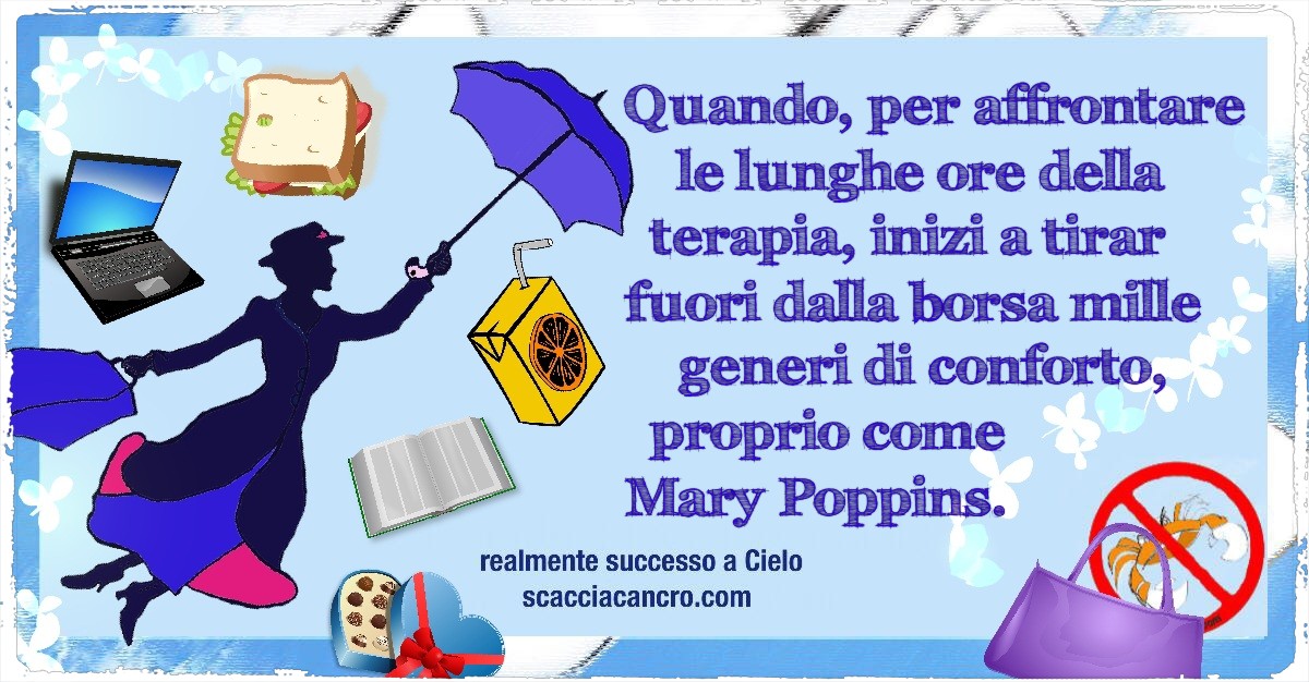 Quando, per affrontare le lunghe ore della terapia, inizi a tirar fuori dalla borsa mille generi di conforto, proprio come Mary Poppins.