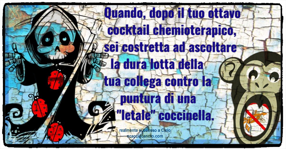 Quando, dopo il tuo ottavo cocktail chemioterapico, sei costretta ad ascoltare la dura lotta della tua collega contro la puntura di una “letale” coccinella.
