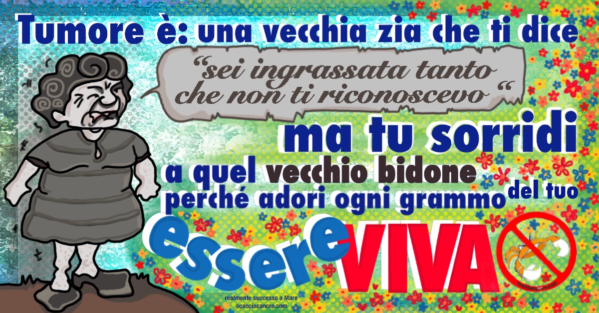 Tumore è: una vecchia zia che ti dice “sei ingrassata tanto che non ti riconoscevo!” ma tu sorridi a quel brutto bidone perché adori ogni grammo del tuo essere viva.