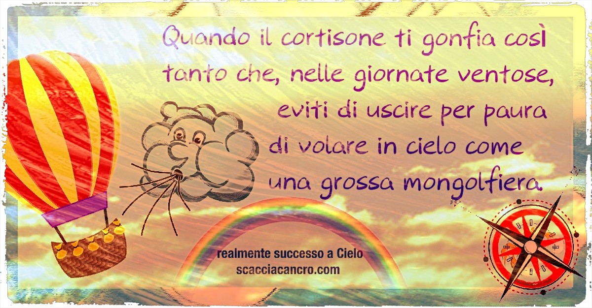 Quando il cortisone ti gonfia così tanto che, nelle giornate ventose, eviti di uscire per paura di volare in cielo come una grossa mongolfiera.