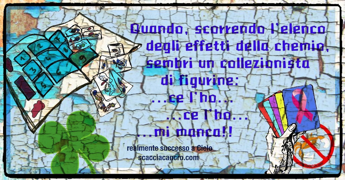 Quando, scorrendo l’elenco degli effetti della chemio, sembri un collezionista di figurine: …ce l’ho…ce l’ho…mi manca!!