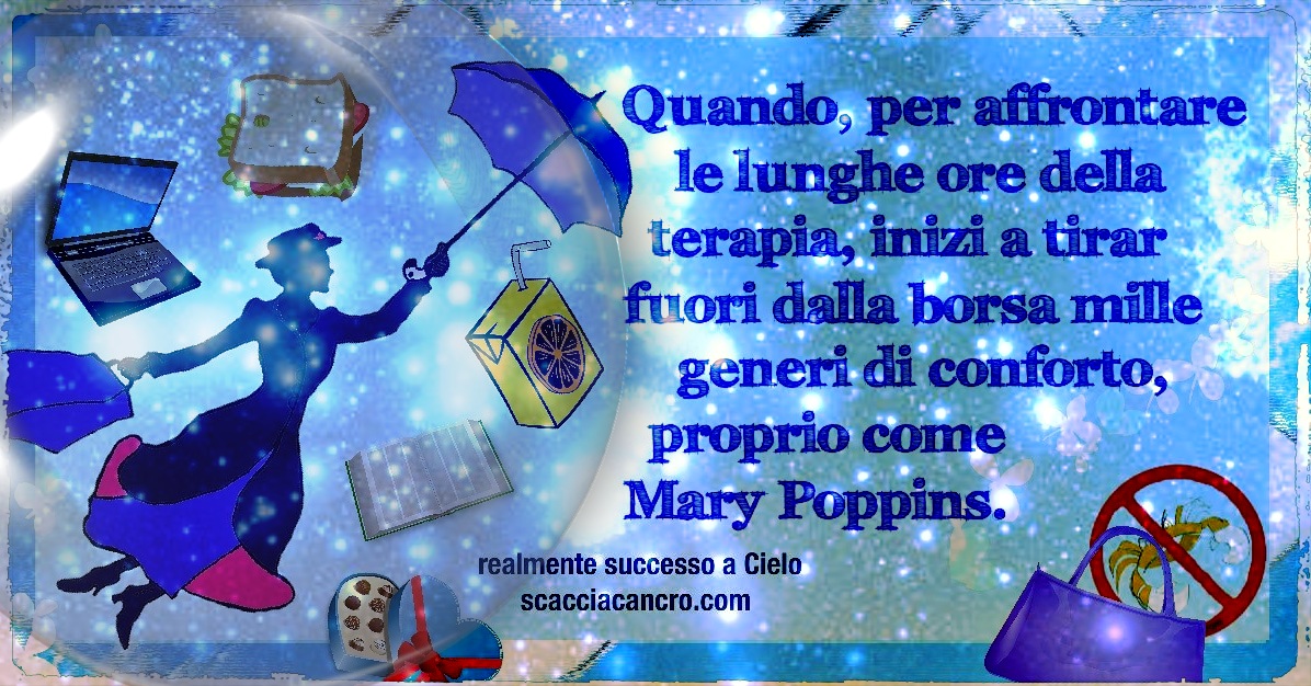 Quando, per affrontare le lunghe ore della terapia, inizi a tirar fuori dalla borsa mille generi di conforto, proprio come Mary Poppins.