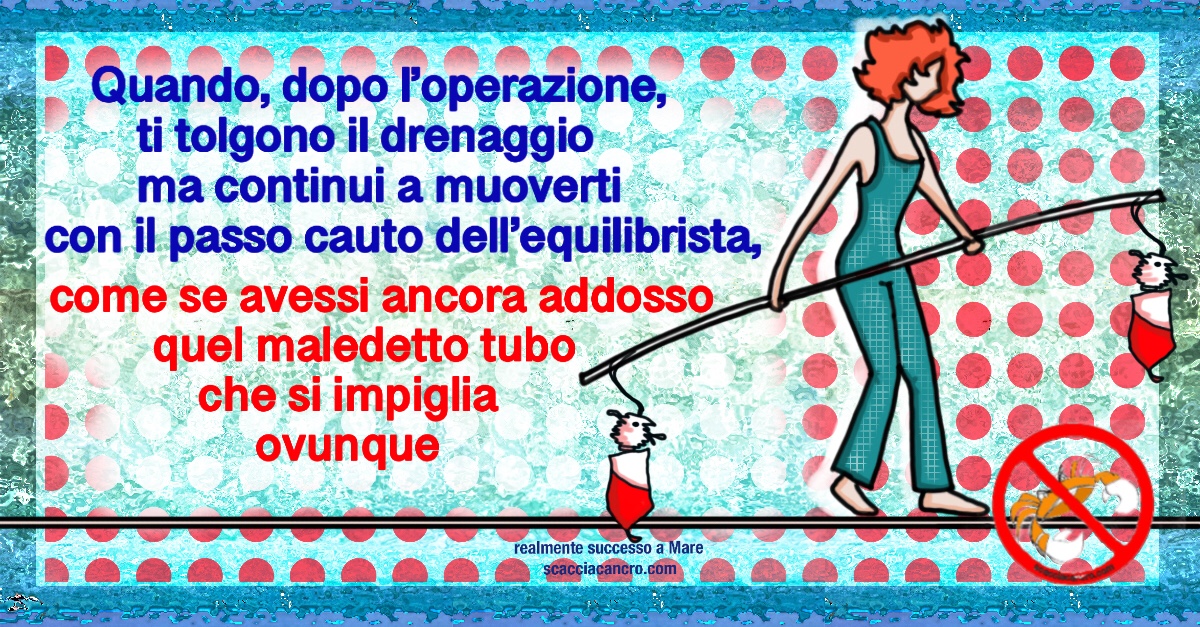 Quando, dopo l’operazione, ti tolgono il drenaggio ma continui a muoverti con il passo cauto dell’equilibrista, come se avessi ancora addosso quel maledetto tubo che si impiglia ovunque.