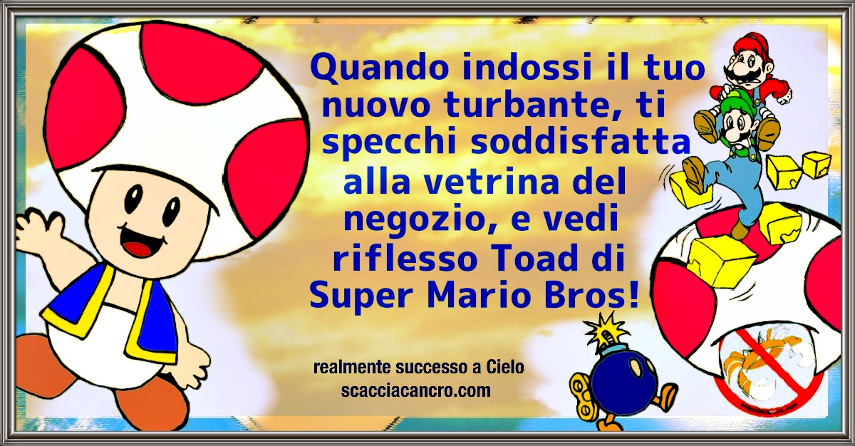 Quando indossi il tuo nuovo turbante, ti specchi soddisfatta alla vetrina del negozio, e vedi riflesso Toad di Super Mario Bros!