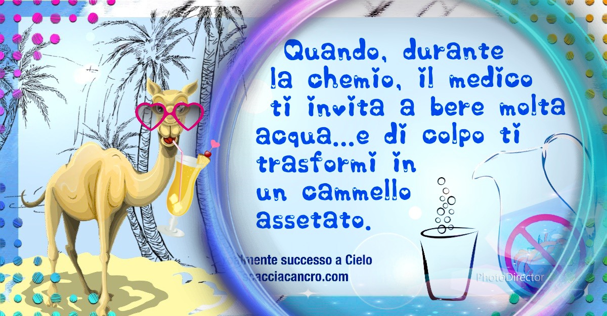 Quando, durante la chemio, il medico ti invita a bere molta acqua…e di colpo ti trasformi in un cammello assetato.