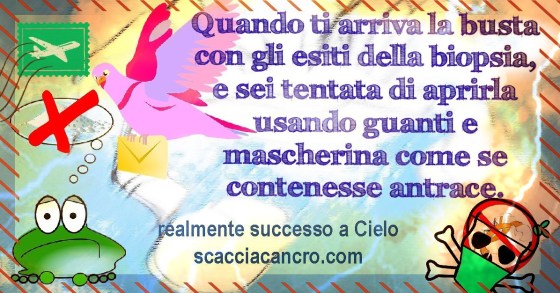 Quando ti arriva la busta con gli esiti della biopsia, e sei tentata di aprirla usando guanti e mascherina come se contenesse antrace.