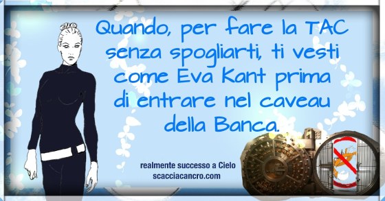 Quando, per fare la TAC senza spogliarti, ti vesti come Eva Kant prima di entrare nel caveau della Banca.