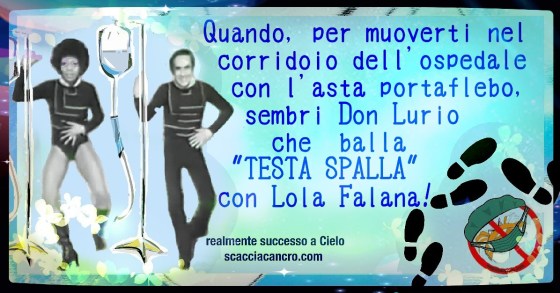 Quando, per muoverti nel corridoio dell’ospedale con l’asta portaflebo, sembri Don Lurio che balla “TESTA SPALLA” con Lola Falana!
