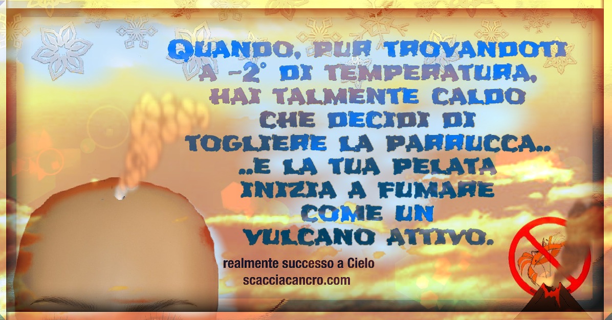 Quando, pur trovandoti a -2° di temperatura, hai talmente caldo che decidi di togliere la parrucca..e la tua pelata inizia a fumare come un vulcano attivo.