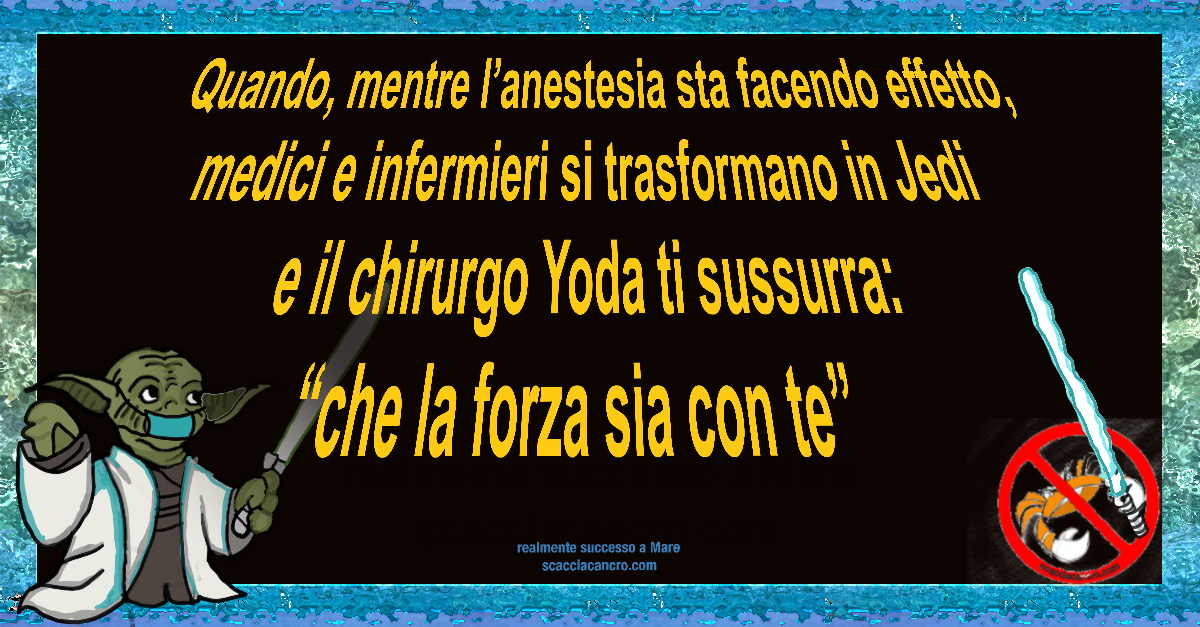 Quando, mentre l’anestesia sta facendo effetto, medici e infermieri si trasformano in Jedi e il chirurgo Yoda ti sussurra: “che la forza sia con te”.