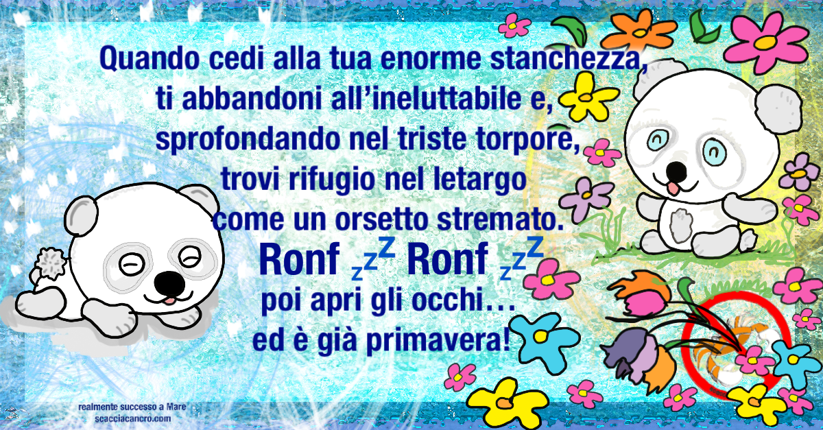 Quando cedi alla tua enorme stanchezza, ti abbandoni all’ineluttabile e, sprofondando nel triste torpore, trovi rifugio nel letargo come un orsetto stremato.