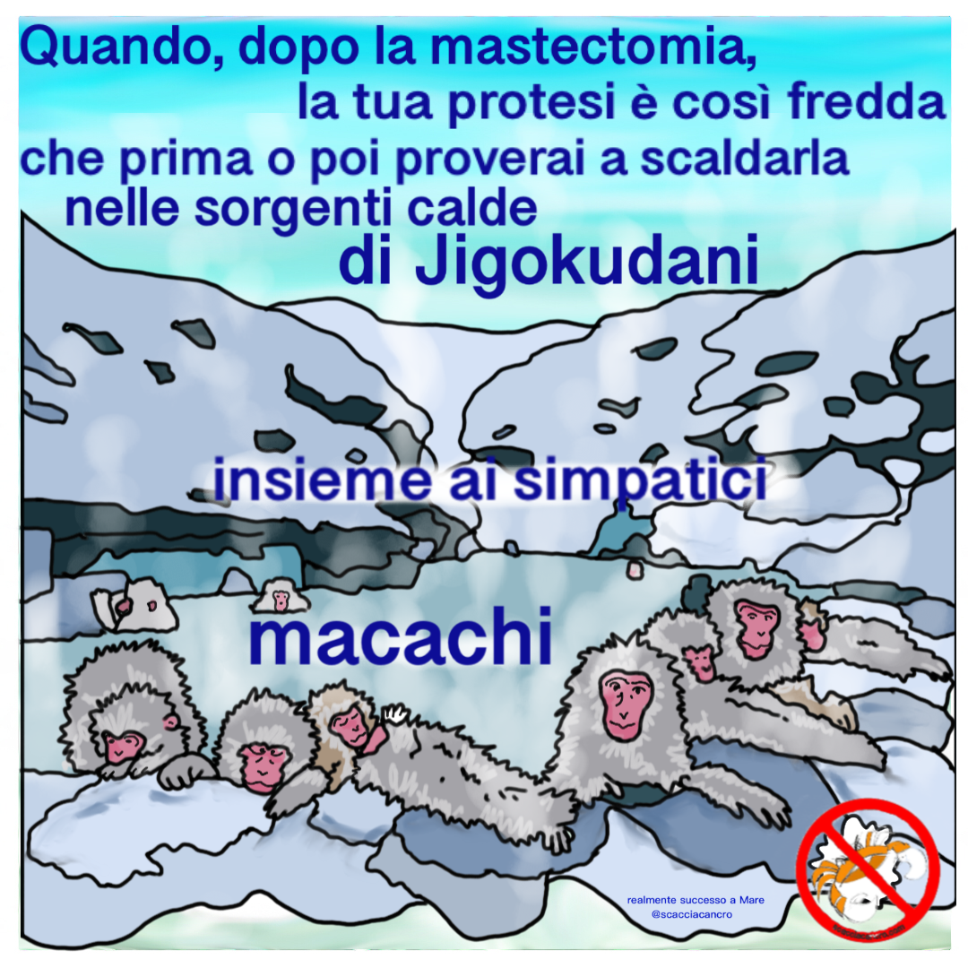 Quando, dopo la mastectomia, la tua protesi è così fredda che prima o poi proverai a scaldarla nelle sorgenti calde di Jigokudani insieme ai simpatici macachi.