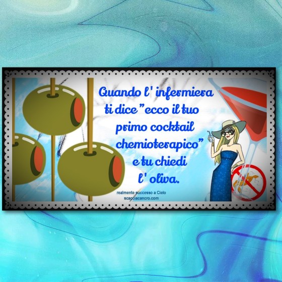 Quando l’infermiera ti dice “ecco il tuo primo cocktail chemioterapico” e tu chiedi l’oliva.