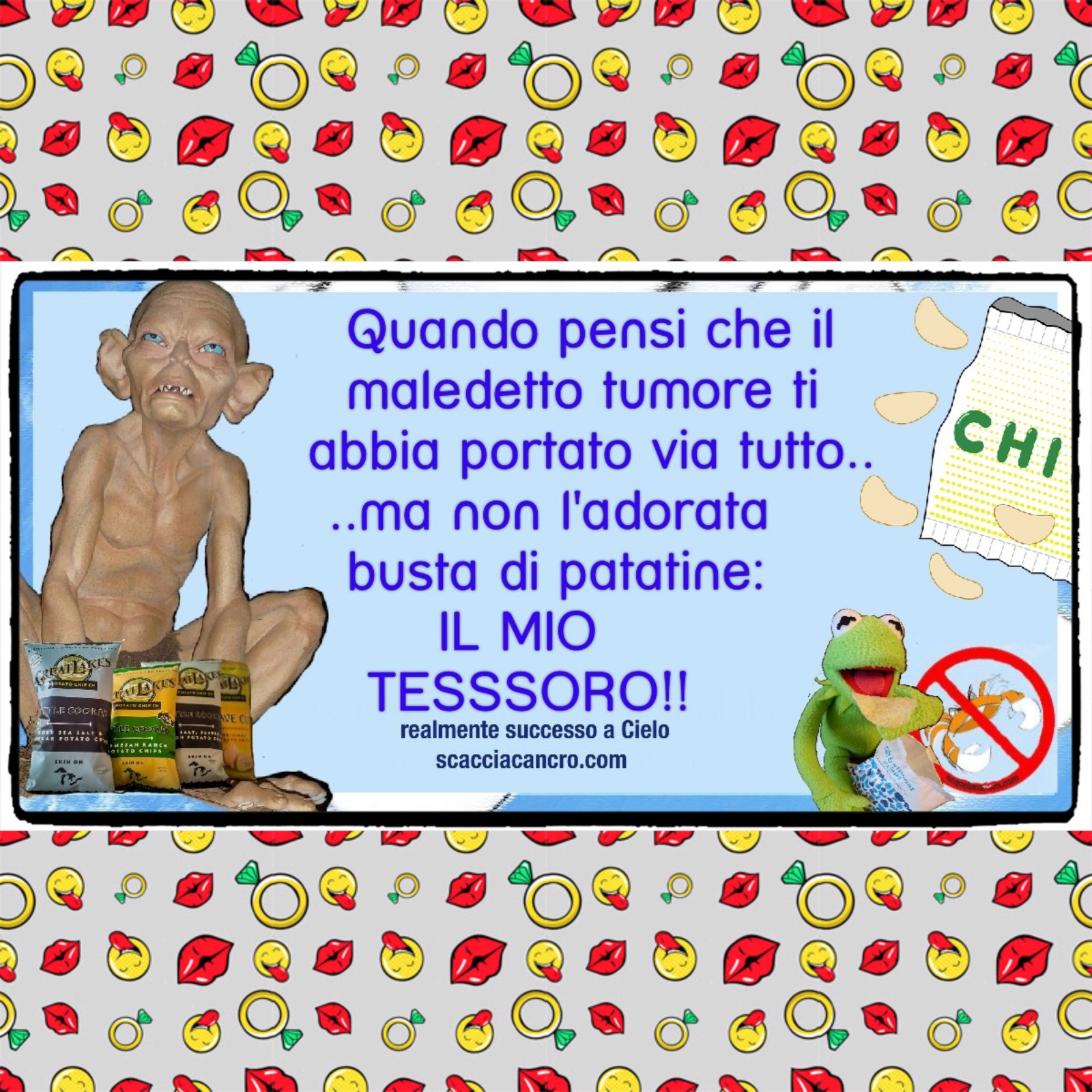 Quando pensi che il maledetto tumore ti abbia portato via tutto..ma non l’adorata busta di patatine: IL MIO TESSSORO!