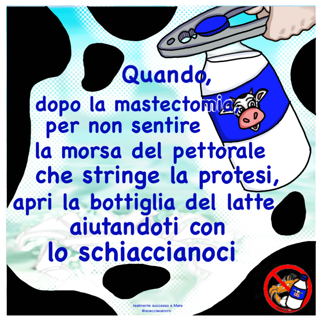 Quando, dopo la mastectomia, per non sentire la morsa del pettorale che stringe la protesi, apri la bottiglia del latte aiutandoti con lo schiaccianoci.