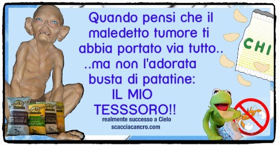 Quando pensi che il maledetto tumore ti abbia portato via tutto..ma non l’adorata busta di patatine: IL MIO TESSSORO!!