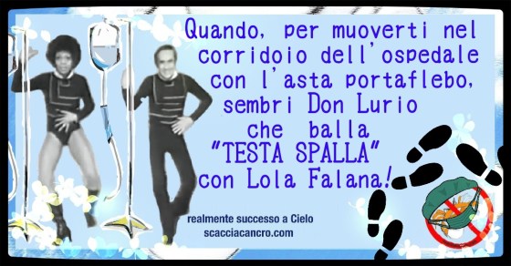 Quando, per muoverti nel corridoio dell’ospedale con l’asta portaflebo, sembri Don Lurio che balla “TESTA SPALLA” con Lola Falana!