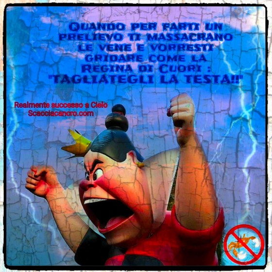 Quando per farti un prelievo ti massacrano le vene e vorresti gridare come la Regina di Cuori: “TAGLIATEGLI LA TESTA!!”