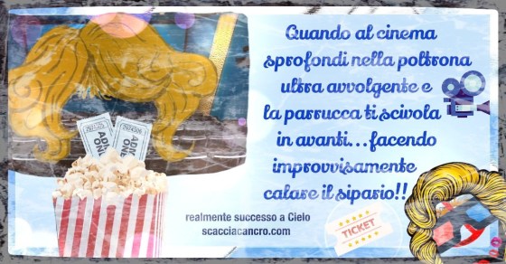 Quando al cinema sprofondi nella poltrona ultra avvolgente e la parrucca ti scivola in avanti…facendo improvvisamente calare il sipario!!