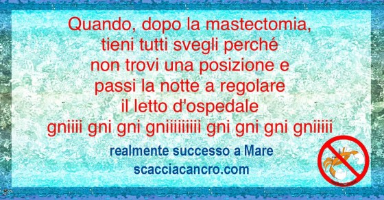 Quando, dopo la mastectomia, tieni tutti svegli perché non trovi una posizione e passi la notte a regolare il letto d’ospedale.